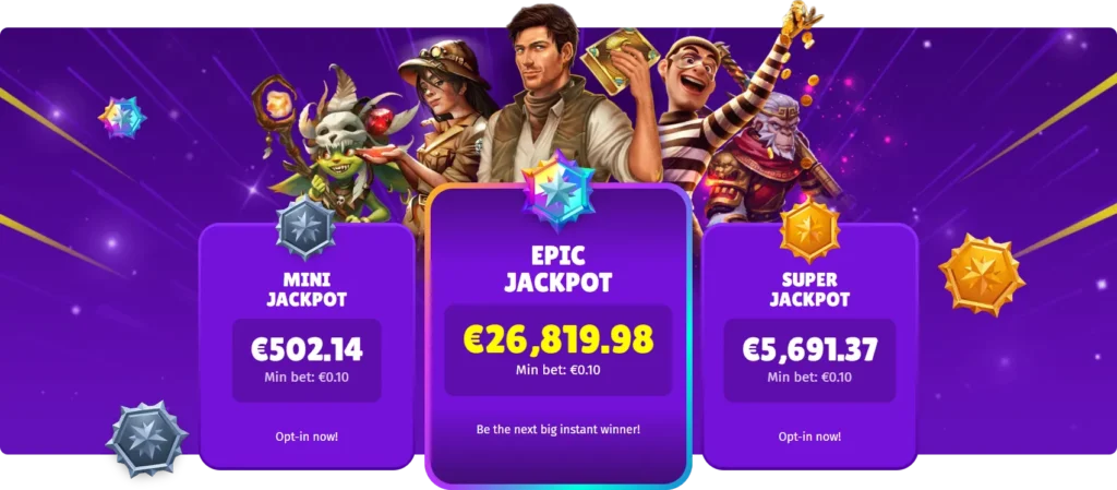 For as little as €0.10 per spin, you can opt-in for your chance at Mini, Super, and EPIC jackpots that grow and grow until they drop like a shower of gold. The best part? These jackpots can land at any moment – it’s the kind of magic that makes every spin exciting. Remember, though, that these jackpots are awarded randomly, and there is no guaranteed win – just the thrill of chance.